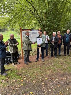 Mit einer gemeinsamen Wanderung von Eppenbrunn nach Walschbronn feierten wir 20 Jahre „Bach ohne Grenzen". Um diese Freundschaft noch mehr zu zeigen, wurde gemeinsam mit Christian Schwalbach (Bürgermeister von Walschbronn) eine Info-Tafel an der Grenze als Zeichen der Deutsch-Französische Freundschaft enthüllt.