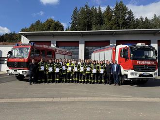 Nach rund 70 Ausbildungsstunden konnten 18 Angehörige der Freiwilligen Feuerwehr Verbandsgemeinde Pirmasens-Land und ein Angehöriger der Freiwilligen Feuerwehr Verbandsgemeinde Rodalben am Samstag 11.10.2025 erfolgreich ihre Grundausbildung abschließen. Die Ausbildung endete mit einer schriftlichen und praktischen Prüfung, die alle Teilnehmerinnen und Teilnehmer mit Erfolg bestanden.