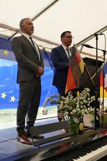 Eröffnet wurde der Jubiläumstag mit einem Tag der offenen Tür, bei dem sich die Besucher ein Bild vom pädagogischen Alltag und der länderübergreifenden Arbeit machen konnten. Für die Kinder waren abwechslungsreiche Spiel- und Bastelstationen angeboten, die großen Anklang fanden. Im offiziellen Teil des Festprogramms würdigte der rheinlandpfälzische Ministerpräsident Alexander Schweitzer persönlich das Engagement der Einrichtung. In seiner Ansprache bezeichnete er den Kindergarten als „eines der schönsten Beispiele für gelungene deutsch-französische Zusammenarbeit“. Zahlreiche Vertreterinnen und Vertreter aus Politik und Gesellschaft – sowohl aus Deutschland als auch aus Frankreich – waren angereist, um ihre Anerkennung auszusprechen. Landrätin Susanne Ganster stellte heraus, dass die Einrichtung eine ganz besondere unter den 72 Einrichtungen des Landkreises sei.
