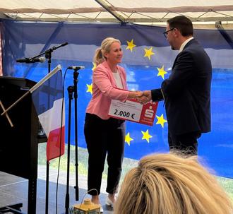 Foto VG; Spendenübergabe an Bürgermeister Klaus Weber durch Landrätin Dr. Susanne Ganster als Vertreterin der Sparkasse Südwestpfalz