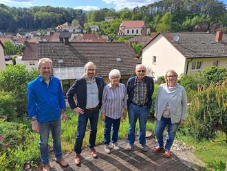 Am Tag des 80. Geburtstages von Paul Gerlach stellten sich von links nach rechts zum Bild: Thorsten Gerlach, Trulbens Ortsbürgermeister Harald Hatzfeld, Ursula und Paul Gerlach sowie Trulbens Gemeindeausschussvorsitzende Jutta Pendt.