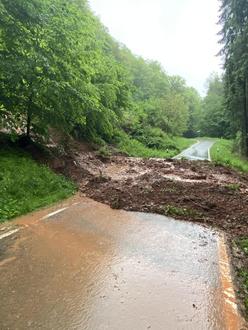 Auch die Verbandsgemeinde Pirmasens-Land war durch den Dauer- und Starkregen am Freitag, den 17.05.2024 betroffen. Im Vergleich zu anderen Verbandsgemeinden im Landkreis war die Gefahrenlage in der Verbandsgemeinde Pirmasens-Land geringer und wir wurden von existenzbedrohenden Schäden weitestgehend verschont. Es gab dennoch mehrere Einsätze unserer Feuerwehren für technische Hilfeleistung. Beginnende von Abpumpen von Wasser in mehreren Keller, Säuberung von Einlaufschächten, Abrichten von Wasser in Gräben, bis zur Beseitigung von umgestürzten Bäumen waren alle unsere Feuerwehreinheiten viele Stunden im Einsatz. Vorsorglich wurde in Kröppen ein volles Rückhaltebecken entlastet. Es gab mehrere Hangrutsche, insbesondere im Bereich der K4 Stausteiner Wald. In Trulben hat ein Hangrutsche den Anbau des Sportheims beschädigt. Aufgrund des Unwetter waren vorübergehend die Zufahrt über die Landstraße nach Trulben wegen Gerölleintrag gesperrt. Auch die Strecke über die Eichelsbachermühler nach Pirmasens war von Freitagnachmittag bis Samstagmittag wegen eines Hangrutsches und Gerölleintrag gesperrt.