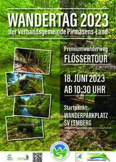 Ein weiterer Wandertag der Verbandsgemeinde Pirmasens-Land findet dieses Jahr am 18. Juni auf dem Premiumwanderweg Flößer-Tour in Lemberg statt. Da auch die ca. 14 km lange Flößer-Tour aufgrund der Corona-Krise nicht gebührend "eröffnet" werden konnte, soll dies nun im Zuge der Wanderung nachgeholt werden.