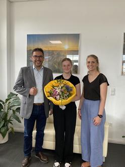 Vlrn.: Bürgermeister Klaus Weber, Praktikantin Fritzi Stumpf, Vanessa Noll vom Personalbüro. Foto: VG PS-Land