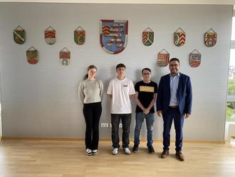 Bürgermeister Klaus Weber begrüßt die neuen Auszubildenden zum Verwaltungsfachangestellten der Verbandsgemeindeverwaltung Pirmasens-Land, sowie die Jahrespraktikantin der Fachoberschule Dahn und freut sich zusammen mit den Mitarbeitern auf die Zusammenarbeit.