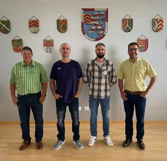 v.l.n.r. Martin Schauer, Büroleiter; Kaan Rossi, Techniker Fachbereich 3; Marc Sauer, Auszubildender zum Verwaltungsfachangestellten; Klaus Weber, Bürgermeister (Foto: VG)