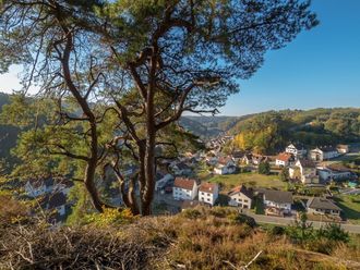 Vom Ortsrand von Vinningen verläuft die Rundtour über die „Mardellen“, entlang zwischen Feldern und Wiesen mit herrlichem Ausblick nach Frankreich, bevor es weiter zur Aussichtkanzel Krappenfels und hinunter zur Krappenhöhle geht.