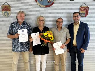 Vlnr.: Matthias Lang, Christine Sauer, Martin Kuntz, Bürgermeister Klaus Weber. Foto: VG-Verwaltung