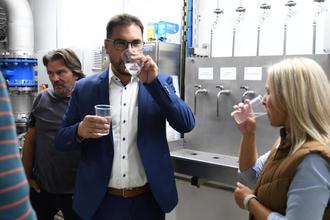 880.000 Euro auf die Anlagentechnik sowie 533.000 Euro auf die Elektronik. Die Baunebenkosten beliefen sich auf 727.000 Euro. Nach einem Dank an Werkleiter Alexander Röckel, der seinerseits den Mitarbeitern als „Rettungsdienst des Wasserwerkes“ nach weiteren Schilderungen zum Bau dankte, sagte Weber: „Unser Trinkwasser braucht sich hinter dem auf dem Markt befindlichen Mineralwasser nicht zu verstecken. Ich empfehle ihnen, Leitungswasser zu trinken“.