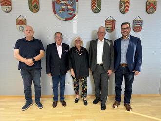V.l.n.r.: Seniorenbeauftragte Lutz Wendel, Rüdiger Kelm, Edeltraud Kaiser, Jürgen Laub und Bürgermeister Klaus Weber. Foto: VG Pirmasens-Land