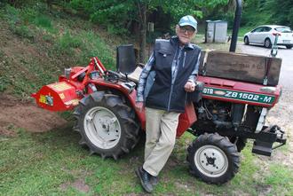Foto: Süs; Karlheinz Groß vor seinem Kubota aus den 50er Jahren, der ihn bei seinen Arbeiten oft begleitet.