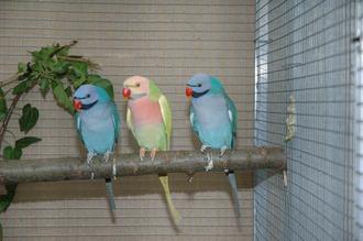 Rosenbrustbartsitte Mutationen wie diese auf der Aufnahme, befinden sich unter den rund 1. 000 Vögeln, die während der zweitägigen Landeschau zu sehen sind.