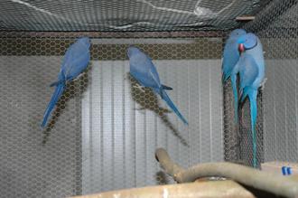 Halsbandsittiche Mutation in blau, die unsere Aufnahme zeigen, befinden sich unter den erwarteten 800 Vögeln, die während der zweitägigen Landeschau in Trulben zu sehen sind. Foto: Bernd Danner, Trulben