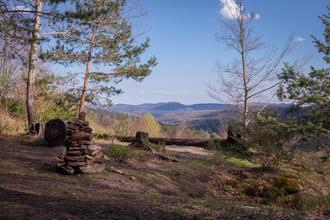 Der Premiumwanderweg „Eulenfels-Tour“ in Eppenbrunn bietet vielfältige Erlebnisse entlang des Weges und ist eine besonders abwechslungsreiche Tour durch den Pfälzerwald. Vom Freizeitpark in Eppenbrunn geht es zuerst durch den Ort, dann an einigen Feldern vorbei um danach den Wald zu betreten. Danach erreicht man auch schon das erste große Highlight und den Namensgeber des Wegs, den Eulenfels. Weiter geht es auf schmalen Pfaden an interessanten Felsformationen wie dem kleinen Teufelstisch vorbei bis zum PWV-Wanderheim Hohe-List. Nach der verdienten Rast kommt man nun an einigen Aussichtspunkten vorbei, an denen man die Ruhe und Gelassenheit der Natur besonders gut genießen kann und einen hervorragenden Weitblick über den Pfälzerwald hat. Durch ein Tal führt die Tour am Wüsteichelsbach entlang und kommt nach einer Weile am Klosterbrückel vorbei. Zum Abschluss passiert man noch den Stüdenbachweiher und den Eppenbrunner Weiher um danach wieder auf dem Parkplatz am Freizeitpark anzukommen.