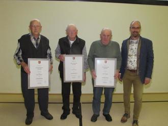 Am 2. Adventsonntag kam es beim Trulber Seniorentag zur Verleihung der Ehrenbürgerschaft. Die Aufnahme zeigt von links nach rechts die drei neuen Ehrenbürger Elwin, Ernst und Hans Kupper zusammen mit Trulbens Ortsbürgermeister Harald Hatzfeld. Foto: Bernd Danner