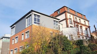 Von der Bahnhofstraße 19 aus in Pirmasens werden die Geschäfte unserer Verbandsgemeinde seit fünf Jahrzehnten geführt. Die Aufnahme entstand vom Parkplatz des Koppgeländes und zeigt den dominierenden Anbau zum Verwaltungsgebäude. Foto: Bernd Danner