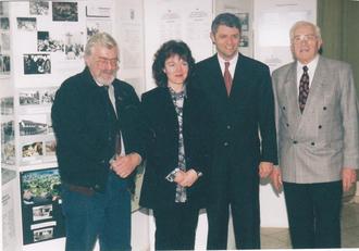 Zum Erinnerungsfoto anlässlich der Bilderausstellung hatten sich vlnr versammelt: Karl Ziegler, Anja Mägel, Bürgermeister Dr. Bernhard Matheis und der Verbandsbeigeordnete Willi Würtz aus Eppenbrunn. Foto: Bernd Danner