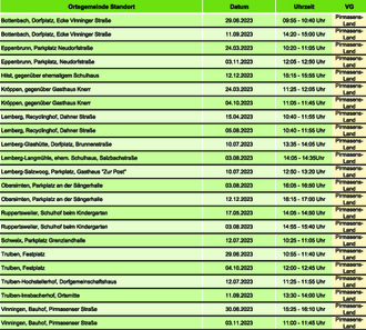 Ab 23.03.2023 werden mit dem Umweltmobil in den Ortsgemeinden im Landkreis Südwestpfalz Problemabfälle eingesammelt. Zu den Problemabfällen, die BürgerInnen zu den jeweiligen Standzeiten an den Haltepunkten des Umweltmobils in haushaltsüblichen Mengen abgeben können, zählen: