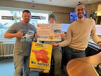 Kevin u. Marc Oehlenschläger am 21.12.22 bei der Scheckübergabe an Jan Seiwert im Sendestudio von Radio Salü
