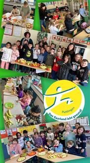 In diesem Jahr am „Tag der gesunden Ernährung“ freuten sich die Kinder der zwei ersten Klassenstufen in der Grundschule Viktoria über die von ihnen gewünschte Auswahl an Obst. Fleißig schnitten sie mit ihren Lehrerinnen das Obst klein und ihre Augen leuchteten bei der Verkostung. Neben den Mahlzeiten zuhause ist für die Kinder auch die abwechslungsreiche Ernährung in der Schule sehr wichtig, damit sie sich in der zweiten Morgenhälfte gut konzentrieren können und leistungsfähig bleiben können. Obst und Gemüse sollte auf jeden Fall ein fester Bestandteil der Ernährung sein. Die Kinder waren bei den Zubereitungen ganz in ihrem Element und fanden einstimmig, dass dies eine leckere Zwischenmahlzeit sei. Für die Gesundheit im Kindesalter ist eine gesunde, ausgewogene und vollwertige Ernährung von zentraler Bedeutung.