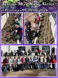 In diesem Jahr wurden saarlandweit rund 7.000 Vergissmeinnicht-Pflanzen durch das Ministerium und die Landesfachstelle Demenz bereitgestellt und in zahlreichen Kommunen gepflanzt – darunter auch in Püttlingen, das sich bereits seit vielen Jahren an der Aktion beteiligt. Die diesjährige Pflanzaktion in Püttlingen fand am 19.03.2026 vor dem Eingangsbereich der neu errichteten LANA Seniorenresidenz in der Bahnhofstraße statt. Zahlreiche Bewohnerinnen und Bewohner nahmen gemeinsam mit Gästen an der Veranstaltung teil.