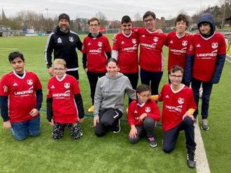 Zum ersten Mal trainierte die Fußball AG der Köllertalschule, Staatliche Förderschule für körperliche und motorische Entwicklung, im Rahmen ihres Sportunterrichts und der einmal wöchentlich stattfindenden Fußball AG auf der Anlage der Sportfreunde Köllerbach im Stadion an Burg. Bei gutem Wetter soll das Training zukünftig regelmäßig auf der Anlage der Sportfreunde stattfinden. Initiatorin dieses ersten Trainings war Sandra Hollinger, Förderschullehrerin an selbiger Schule und gleichzeitig Übungsleiterin der Burgschlümpfe der SF Köllerbach. Zusammen mit ihrem Kollegen, dem Förderpädagogen Michael Reuter, hatten sie die einzelnen Übungseinheiten speziell auf die Bedürfnisse der Kinder und Jugendlichen zugeschnitten, wobei der Spaß und die Freude am Fußball nicht zu kurz kamen. Der erste Vorsitzende (Verwaltung) Dr. Michael Ernst begrüßte auch im Namen des ersten Vorsitzenden (Sport) Bernd Gillet die Gäste auf der Anlage und überreichte jedem Trainingsteilnehmer ein Originaltrikot der SF Köllerbach, das mit Begeisterung übergestreift wurde. Genauso wie das Leitmotiv der Schule „Individualität, Herzlichkeit und Respekt prägen unser Schulleben. Unsere Schüler*innen sollen Freude am Lernen und Freude am Leben haben“ verlief auch das Training und anschließende Spiel, was allerdings nur der Anfang des Projektes „Inklusionsfußball bei den Sportfreunden Köllerbach 1931 e. V.“ sein soll, dass die Sportfreunde Köllerbach in baldiger Zukunft angehen wollen.
