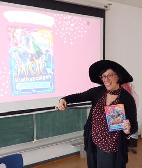 Im Anschluss beantwortete Esther Kuhn Fragen. Sie berichtete, dass sie schon mit sechs Schriftstellerin werden wollte – trotz Lese-Rechtschreib-Schwäche und Umwegen über andere Berufe. Dennoch verfolgte sie ihren Traum weiter und ermutigte die Schülerinnen und Schüler: „Wenn man es denken kann, kann es wahr werden.“ Zum Abschluss gab es Autogramme. Wer mehr über Tobi und die „Magic Kleinanzeigen“ erfahren möchte, kann die Bücher in der Schulbibliothek ausleihen – denn manchmal braucht man ein bisschen Magie im Leben.
