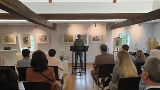 Zu einer etwas ausgefallenen Geburtstagsfeier hat die Stadt Püttlingen am 30. April 2023 eingeladen. Der Künstler Hans Hirschmann wäre an diesem Tag 90 Jahre alt geworden. Die Veranstaltung, die im Festsaal des Püttlinger Schlösschens stattfand, zog zahlreiche Besucher:innen an. Heitere, besinnliche, traurige Momente aus dem Leben des Künstlers wurden während der Ansprachen durch den Beigeordneteten der Stadt Püttlingen Dominik Becker, den Laudator Bernd Gilgen und den Enkel Markus Hirschmann dem interessierten Publikum berichtet. Musikalisch wurde die Matinée von Alexandra Simion und Maria Klän, Schülerinnen der Musikschule Püttlingen e. V., umrahmt. Ausgewählte Werke aus dem Nachlass des Künstlers gaben einen Einblick in das künstlerische Schaffen des Hans Hirschmann.