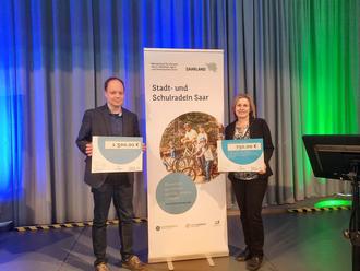 Das Marie-Luise-Kaschnitz-Gymnasium hat in diesem Jahr zum ersten Mal bei der Aktion Schulradeln teilgenommen und gleich doppelt abgeräumt. So viele Kilometer wie möglich sollten vom Team MLK innerhalb von 3 Wochen erradelt werden. Jetzt erfolgte die Endabrechnung und die besten Teams wurden mit Geldpreisen ausgezeichnet. Das MLK wurde „Beste Newcomer Schule“ und belegte landesweit Platz vier in der Kategorie „Fahrradaktivste weiterführende Schule“. Dafür überreichte die Umweltministerin Petra Berg in einem feierlichen Akt einen Betrag in Höhe von 2.250 EUR stellvertretend für die Schulgemeinschaft an Frau Hell (Fachvorsitzende Sport) und Herrn Schirra (Abteilungsleiter Oberstufe). Für die Verwendung des Preisgeldes stehen bereits viele Ideen im Raum. Dank einer Investition des Regionalverbandes Saarbrücken befinden sich aktuell 60 Fahrradstellplätze, davon 20 überdacht, und eine Fahrrad-Reparaturstation im Bau. So gerüstet freut sich das MLK auf die Challenge 2023.