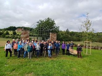 Der Tagesausflug begann bereits morgens um 9:00 Uhr am ZOB in Püttlingen. Rund 50 begeisterte Wanderfreunde im Alter zwischen 17 und 83 Jahren machten sich von dort mit dem Reisebus auf in die Grenzregion. Zu Beginn des Wanderweges erreichte die Gruppe zunächst das beeindruckende Grenzblickfenster, das den Blick auf die grüne Grenze eröffnete. Bereits in Sichtweite befand sich das zweite Etappenziel, die französische Kirche Église Saint-Jeanne-d’Arc. Die Kirche, die gerade für die Fronleichnamsprozession vorbereitet wurde, beeindruckte mit ihrer historischen Bedeutung. Im frühen 20. Jahrhundert errichtet, wurde sie einzig und allein für die Leidinger Bürgerinnen und Bürger auf der französischen Seite gebaut, die nicht mehr die Kirche St. Remigius auf der deutschen Seite besuchen konnten. Nach einem kurzen Besuch im Inneren der Kirche, wo die kunstvollen Glasfenster und das schöne Altarbild bewundert werden konnte, ging der eigentliche Wanderspaß los. Der Weg führte durch den Eberswald und den Dennenwald Richtung Heining lès Bouzonville. Je höher man stieg, desto beeindruckender wurde die Aussicht. Dabei konnte man über das Saarland hinaus nach Luxemburg, den Ausläufern des Hunsrücks bis hin zu den Höhen des Saargau blicken. Trotz vorangegangenem Regen und matschiger Wege, ließen sich die Wanderlustigen nicht beirren und folgten dem ehrenamtlichen Modulbetreuer Gerhard Müller und seiner Frau Beate über viele Kilometer zu verschiedenen Sehenswürdigkeiten und Abholstationen. Gleich mehrmals auf ihrem Weg hatten die Teilnehmenden nämlich die Möglichkeit, sich an bestimmten Punkten durch das Team des Mehrgenerationenhauses abholen zu lassen. Wer den Rundweg abkürzte, konnte gleich zum entspannten Teil der Reise im Dorfgemeinschaftshaus in Ihn übergehen. Dort lief die Küche dank der Hauswirtschaftskräfte des Mehrgenerationenhauses bereits auf Hochtouren, um die hungrigen Wandernden am Ende des Tages mit leckerem Kuchen und Kaffee, einem kalten Buffet sowie heißen Pizzabrötchen zu versorgen.