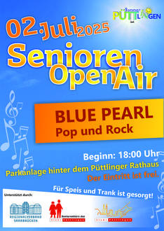 Los geht es am 02.07.2025 mit dem Senioren Open Air. Das Programm beginnt um 18.00 Uhr. An diesem Abend sorgen Blue Pearl für ausgelassene Stimmung im Stadtparkareal hinter dem Rathaus. Für Speis und Trank ist gesorgt – der Eintritt ist wie immer frei.