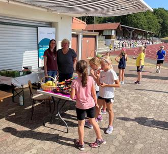 Am vergangenen Freitag kamen die Schülerinnen und Schüler zu dem diesjährigen Sportfest auf die Breitwies. Die Stadt Püttlingen unterstützte durch „Püttlingen lebt gesund!“ mit einer kostenlosen Obst- und Gemüseauswahl. Hierbei konnten sich die Schülerinnen und Schüler der Grundschule Köllerbach zwischendurch gesund stärken, erfrischen und waren fit für ihren Wettkampf. Besonders beliebt waren Wassermelone und Erdbeeren, aber ebenso bei den anderen Obstsorten wurde kräftig zugegriffen. Ansonsten bedienten sich alle sehr gerne beim kleingeschnittenen Gemüse.