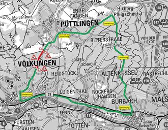 Zur Sicherstellung der notärztlichen, notfallmedizinischen und polizeilichen Versorgung der Bevölkerung ist es erforderlich, den Streckenabschnitt auf der L 136 zwischen dem Krankenhauskreisel und dem Kopernikuskreisel für den Individualverkehr voll zu sperren. Die Nutzung der Rettungsgasse am Baufeld entlang ist ausschließlich für Rettungsfahrzeuge und Linienbusse erlaubt. Die Umleitung erfolgt über Riegelsberg, Altenkessel, Luisenthal und Völklingen. Die Gegenrichtung verläuft entsprechend umgekehrt.