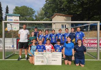 Am Ende einer an Highlights ohnehin nicht armen Saison, durften sich die Juniorinnen der DJK Püttlingen über ein weiteres, besonderes Ereignis freuen. Stellvertretend für den Saarländischen Fußballverband (SFV) übergab Jan Neubauer, Leiter und Trainer am DFB-Stützpunkt auf der DFB-Sportanlage am Espenwald, im Auftrag der Egidius-Braun-Stiftung des Deutschen Fußball-Bundes (DFB), einen Symbolscheck im Wert von 10.000,- EUR. Dies entspricht dem Gegenwert einer einwöchigen Fußball-Freizeit an der Sportschule Schöneck, an der eine Gruppe der DJK-Juniorinnen in den Sommerferien teilnehmen wird.