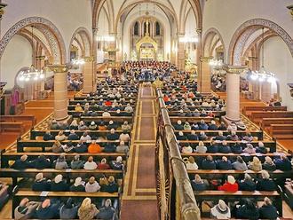 Es war schon ein imposanter Anblick, rund 90 Akteure von Chor und Orchester im Chorraum des altehrwürdigen Köllertaler Domes zu sehen, die die würdige Kulisse für das diesjährige Weihnachtskonzert des Förderkreises der Kirchenmusik von St.Sebastian bildeten. Der Förderkreis hatte im Jahre seines 25-jährigen zum Abschlusskonzert geladen und viele Musikkenner und Freunde der Kirchenmusik waren der Einladung gefolgt. Die Weihnachtskantate „Der Stern von Bethlehem“ von Josef Gabriel Rheinberger stand auf dem Programm, passend zur Jahreszeit zwischen den Tagen, am letzten Sonntag des Jahres. Und die Besucher in der fast bis auf den letzten Platz gefüllten Kirche brauchten ihr Kommen nicht zu bereuen. Der Kirchenchor St.Sebastian und das Kammerorchester der Musikschule Püttlingen zeigten ihr Können und begeisterten die Besucher. Der lang anhaltende Applaus und die Kommentare nach dem Konzert bestätigten dies. „Einfach Spitze“ und „für Püttlinger Verhältnisse außergewöhnlich“ sind nur zwei von mehreren zustimmenden Worten. Unter der Gesamtleitung von Chordirektor Claus Bär und des Leiters des Kammerorchesters Motonobu Futakuchi stellten die Sängerinnen und Sänger des Chores sowie die Musikerinnen und Musiker des Kammerorchesters ihr musikalisches Können eindrucksvoll unter Beweis. Auch die Solistinnen und Solisten - Michael Langenfeld, Jonas Mayer, Martina Buchholz, Andrea Blum Schröter und Jessica Hedrich - trugen durch ihren Gesang und das Orgelspiel wesentlich zum Gelingen des Konzertes bei. So konnten alle Beteiligten zufrieden Bilanz ziehen und wurden in die richtige Stimmung und Gefühlslage der Weihnachtszeit versetzt. Damit gingen die Kirchenmusiktage 2024 in St.Sebastian zu Ende. Der Förderkreis bedankt sich bei allen Besucherinnen und Besuchern für ihr Kommen, ein ebenso herzlicher Dank gilt allen Helferinnen und Helfern und nicht zuletzt allen Sponsoren für ihre Unterstützung. Auch im neuen Jahr wird es ein umfangreiches Musikprogramm geben, das in Kürze veröffentlicht wird.