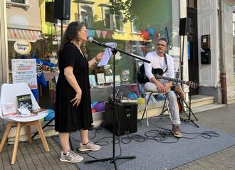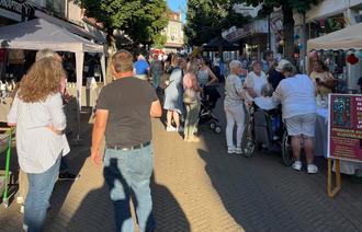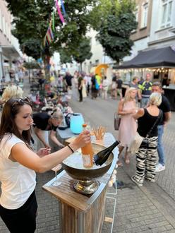 Die am Laternenmarkt teilnehmenden Geschäfte hatten nicht nur bis 22.00 Uhr geöffnet, sie hatten sich auch richtig tolle Aktionen einfallen lassen. Obendrauf konnten Produkte von zahlreichen Marktständlern bestaunt und verkostet werden, die am Kardinal-Maurer-Platz und in der unteren Pickardstraße zu finden waren. Lesung mit Live-Musik gab es vor dem Zentrumsbüro, im Popup Buchladen der Buchhandlung Balzert. Zahlreiche Besucher lauschten Live-Musik auch vor dem Karlsbergfass, dort trat die Band Sonic Silence auf. Die örtliche Gastronomie hatte an diesem Abend sehr gut zu tun, es gab kaum mehr einen freien Platz zu ergattern. Zum Glück fanden „Hungrige“ aber noch genügend Essens-Angebote auf dem Kardinal-Maurer-Platz.