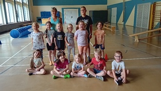 Am Donnerstag, den 03.07.2025 war es so weit: die Kinder der Kita durften das erste Mal das Abzeichen des Landessportverbandes Saar ablegen. Alle waren sehr aufgeregt, denn Schnelligkeit, Konzentration sowie Hand und Augenkoordination wren von ihnen gefragt. Am Ende haben alle 22 Kinder im Alter von 4 bis 6 Jahren erfolgreich bestanden und konnten eine Woche später ihre Urkunde und Medaille stolz in Empfang nehmen. Vor allem die Zusammenarbeit mit dem TV Ritterstraße stand hierbei im Vordergrund, ohne den diese Aktion nicht möglich gewesen wäre. Denn dieser ermöglichte nicht nur die Nutzung des Materials, sondern half auch personell. Turntrainerin Claudia Balzert kannte schon viele der Kinder aus dem wöchentlichen Training und war so eine große Unterstützung. Das Turntraining findet immer dienstags von 15.00 bis 16.00 Uhr für Schulkinder statt und von 16.00 bis 17.00 Uhr für Kindergartenkinder. Nach den Sommerferien sind hier auch wieder Plätze frei, Interessierte können sich gerne auf der Internetseite des TV Ritterstraße informieren.