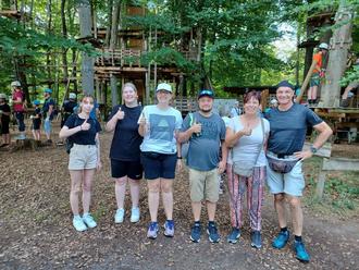 Bereits im dritten Jahr veranstaltet das Mehrgenerationenhaus (MGH) der Stadt Püttlingen das Projekt „Grenzerfahrungen“ mit verschiedenen Ausflügen für Jung und Alt. Am Samstag, den 23.07.2022, stand dabei ein Tagesausflug in das Naherholungsgebiet „Jägersburger Weiher“ nahe Homburg auf dem Programm. Das Besondere an diesem Tag: Die Teilnehmerinnen und Teilnehmer planten und organisierten die Fahrt eigenhändig. Das Team des MGH legte das Reiseziel bereits Anfang des Jahres zum Auftakt des Projektes fest. Anschließend halfen die Mitarbeiterinnen dabei, verschiedene Freizeitmöglichkeiten, leichte und herausfordernde Wanderrouten sowie gemütliche Einkehrmöglichkeiten zusammenzutragen. Aber erst bei einem gemeinsamen Planungsabend entschieden die Anwesenden, wie sie den Tag verbringen möchten. Heraus kam ein buntes Programm, das für jede Generation Abwechslung versprach. In kleinen Gruppen fanden sich unerschrockene Kletterer, erfahrene Wanderer, gelassene Schlenderer und kulinarische Genießer im Alter zwischen 19 und 80 Jahren zusammen und entdeckten die Vielfalt des Naherholungsgebietes. Ein gemeinsames Mittagessen führte die Reisenden schließlich wieder zusammen. Mit Blick auf den Brückenweiher See ließ man den Tag im Blockhaus ausklingen, bevor sich die Gruppe in den selbst organisierten Fahrgemeinschaften wieder auf den Rückweg machte. Gemeinsam haben es die Teilnehmerinnen und Teilnehmer geschafft, einen rundum gelungen Tagesausflug auf die Beine zu stellen, ganz nach dem Motto des Mehrgenerationenhauses: „Miteinander - Füreinander“.