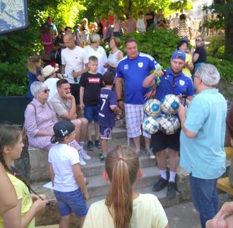 Am 17. Juli 2022 feierte die Bilinguale KiTa Püttlingen in der Espenstraße ihr großes Sommerfest mit allen Kindern und Eltern. Im Rahmen dieses Sommerfestes konnte Markus Thiel, Vereinsvorsitzender der KiTa, auch Kevin Köllen, den neuen Jugendleiter der DJK Püttlingen, zusammen mit Christian Reisdorf, dem neuen Stellvertretenden Jugendleiter der DJK, auf dem KiTa-Gelände begrüßen. Als Dank für die jahrelange gute Zusammenarbeit spendete die DJK Püttlingen der KiTa vier neue Bälle, darunter auch zwei Leichtspielfußbälle der Größe 4, die zwar vollwertige Bälle sind, aber nur ein Gewicht von knapp 300 g haben, und so die idealen Bälle für die kleineren Kinder in der KiTa sind.