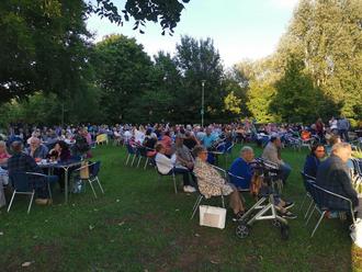 Ein bunt gemischtes Publikum aus Jung und Alt fand sich am vergangenen Mittwoch im Püttlinger Stadtpark ein zur vierten und letzten Veranstaltung der beliebten Open-Air-Sommer-Reihe in diesem Jahr. Die Besucherinnen und Besucher wurden eingeladen, eigenes Essen, Getränke und Picknickdecken mitzubringen. Das Konzept wurde ausgesprochen gut angenommen. Einige brachten sogar ihre eigenen Stühle und Tische mit, schmückten diese mit sommerlicher Deko und Beleuchtung und schafften sich so ihre ganz eigene Wohlfühl-Atmosphäre. Auch das Wetter zeigte sich von seiner besten Seite und belohnte die zahlreichen Gäste mit einem trockenen Sonne-Wolken-Mix und angenehmen Temperaturen.