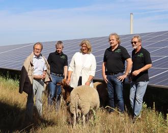 Ein weiteres Highlight ist die Pflege der Fläche durch eine Herde Coburger Fuchsschafe der Schäferin Nina Utesch. Nina Utesch erklärte der Ministerpräsidentin: „Der Idealzustand: eingezäunte Flächen, ungedüngt und ungespritzt. Meine Schafe dienen als Samentaxis und verbreiten hier auf der Fläche Pflanzensamen, die sie von anderen Flächen in ihrem Fell mitbringen. Besser geht es nicht.“