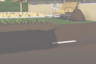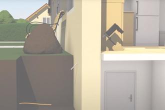 BU: Die Erdrakete bohrt sich mithilfe von Druckluft langsam und schonend durch das Erdreich zum Haus.