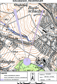 Mit Anordnung vom 27. Juli 2017, BMVg IUD I 6 - Anordnungs-Nr.: IV/684/GE wurde ein Gebiet in der Gemeinde Püttlingen im Landkreis Regionalverband Saarbrücken, Land Saarland, zum Schutzbereich für die Verteidigungsanlage Heusweiler erklärt.