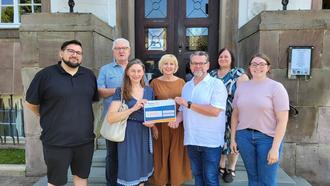 v.l.n.r.: Joel Friedrich, Martin Schmidt, Nicole Kasparek, Bürgermeisterin Denise Klein, Jürgen Detzler, Tanja Friedrich, und Claudia Gläser (MGH).
