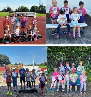 Auch in diesem Jahr waren die Kleinen im Rahmen des Sommerferienprogramms der Stadt Püttlingen in Zusammenarbeit mit dem TVP wieder ganz groß. An vier verschiedenen Terminen bewiesen insgesamt 31 Kids zwischen 3 und 6 Jahren beim Minisportabzeichen ihre Fähigkeiten. Eingebunden in eine Geschichte, bei der ein Schatz zurückzuholen war, mussten sich die Kinder u. a. durch eine Mausefalle winden, einen Parcours bewältigen, balancieren, auf ein Ziel werfen und beim Sprint ihre Schnelligkeit unter Beweis stellen. Alle hatten Spaß an der Bewegung und am Ende bekam jedes Kind eine Urkunde und eine Medaille.