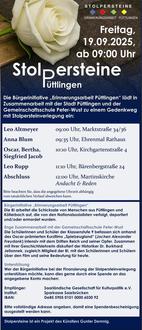 Am Freitag, den 19. September 2025, laden die Bürgerinitiative Erinnerungsarbeit Püttlingen gemeinsam mit der Stadt Püttlingen und in Kooperation mit der Gemeinschaftsschule Peter-Wust zu einer weiteren Stolpersteinverlegung ein. Im Rahmen eines Gedenkwegs werden insgesamt sechs Stolpersteine verlegt, die an Menschen aus Püttlingen erinnern, die während der Zeit des Nationalsozialismus entrechtet, verfolgt oder ermordet wurden.