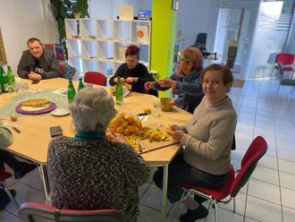 Am Mittwochnachmittag, den 18. Januar 2023, liefen im Haus Lichtblick die Vorbereitungen für frisch zubereiteten Hackbraten, Püree und Erbsen-/Möhrengemüse. Gemeinsam wurde geschält, geschnippelt, gekocht und gebraten.. Am Abend belieferte das Team des DEMENZ-Verein im Köllertal den Kältebus Saarbrücken e.V. am Römerkastell mit 30 warmen Mahlzeiten. Zum Dessert wurden zwei selbstgebackene Kuchen überreicht.