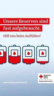 Blutspenden werden weiterhin dringend benötigt! Einige Unfall- oder Verbrennungsopfer sind sogar auf 40 oder mehr Blutkonserven angewiesen, um zu überleben. Blut wird aber nicht nur bei Unfällen benötigt, sondern wird auch im medizinischen Alltag für viele Patientenbehandlungen. Und auch viele medizinische Eingriffe - zum Beispiel Operationen oder Krebstherapien - sind heutzutage nur möglich, wenn menschliches Blut in ausreichender Menge zur Verfügung steht. Deshalb ruft das Deutsche Rote Kreuz jeden auf, Blut zu spenden, der sich fit und gesund fühlt!