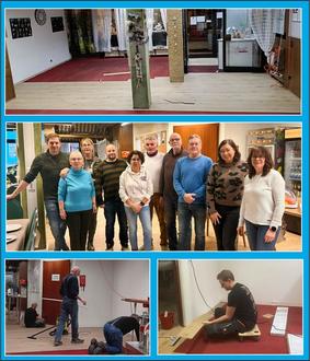 Den in die Jahre gekommenen Fußbodenbelag hat das MGH-Team – Gabi, Ilka, Vera und Anna – gemeinsam mit den engagierten Ehrenamtlichen Fredi Adams, Hans-Werner Albert, Dominic Gläser und Siggi Jacoby erneuert. Zusätzlich wurden Wände frisch gestrichen und zahlreiche Möbel instandgesetzt.