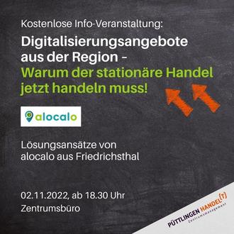 02.11.2022: „Digitalisierungsangebote aus der Region – Warum der stationäre Handel jetzt handeln muss!“ mit alocalo Friedrichsthal, 18.30 Uhr